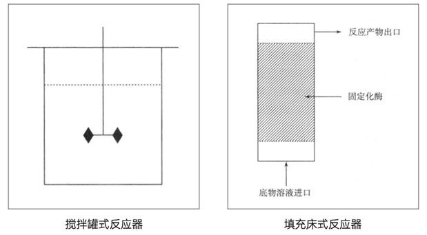 酶的反應主要分為均相酶反應,即在溶液中直接應用游離酶進行反應,和非均相酶反應,即應用固定化酶進行反應。在具體的操作過程中,可根據酶的反應類型與實際情況選擇不同的酶生物反應器。常見的酶生物反應器主要包括攪拌罐式反應器(stirred tank reactor,STR)、填充床式反應器(packed bed reactor,PBR)、流化床式反應器(fluidized bed reactor,FBR)、膜式反應器(membrane reactor,MR)、鼓泡式反應器(bubble column reactor,BCR)和噴射式反應器(projectional reactor,PR)等。