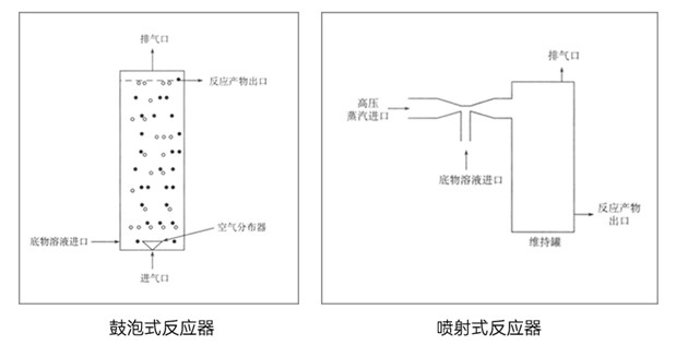 6. 噴射式反應器:適用于游離酶的催化反應,可應用于連續式操作。體積小,混合均勻,催化反應速度快,適用于某些耐高溫酶的反應。